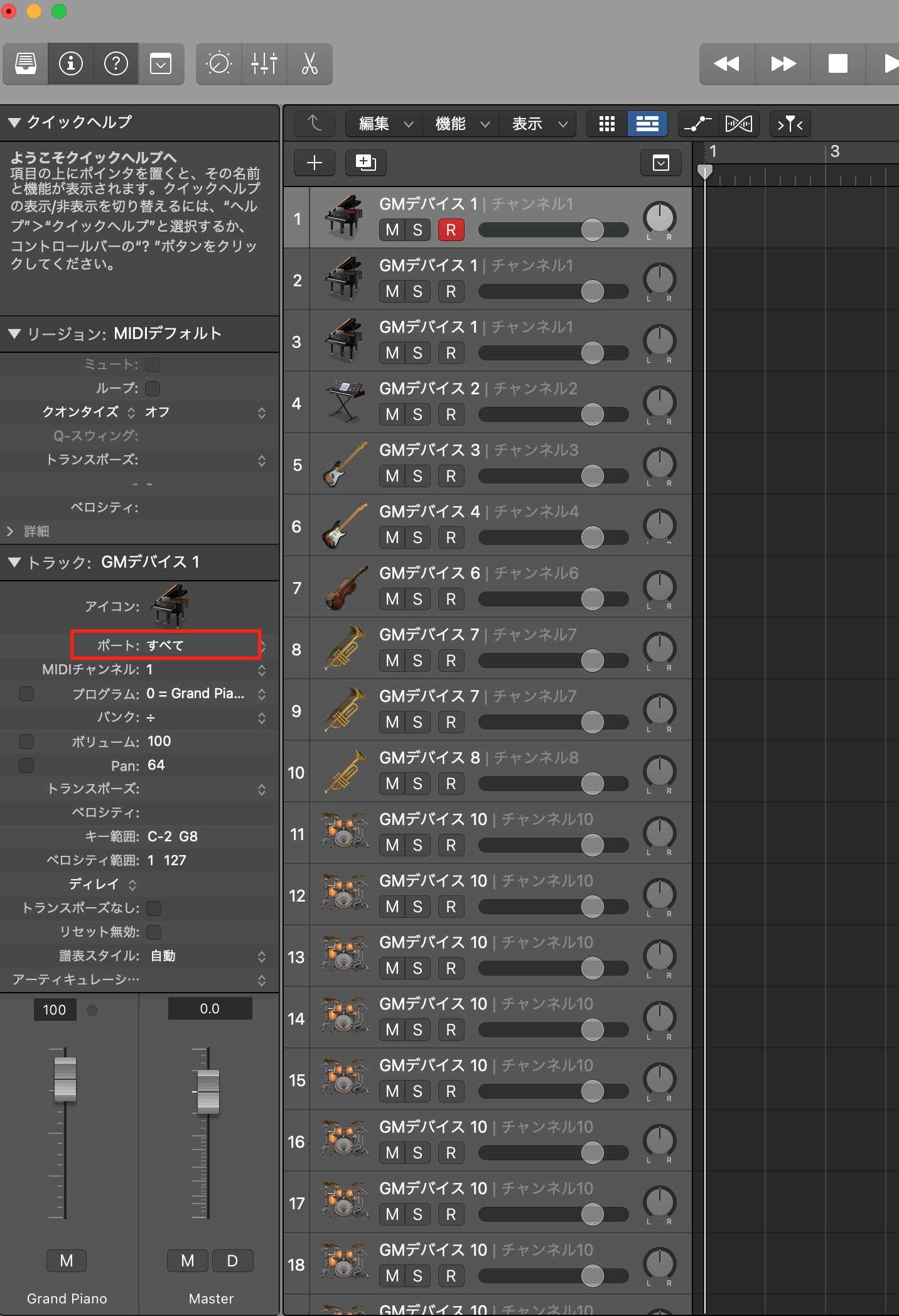 問題としては、SMFをLogic ProでOptionキーを押しながら開くと、全てのトラックのポートが「すべて」に設定されてしまいます。