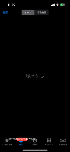 電話アプリの履歴が全部消え、新たに発着信があっても何も残りません。