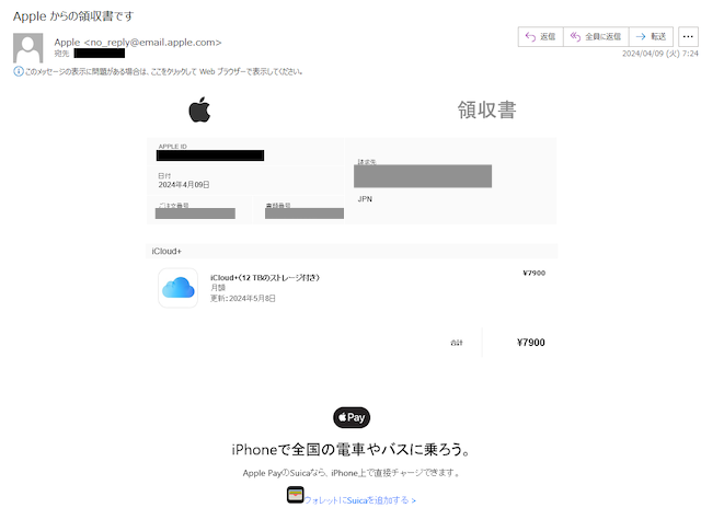 Apple IDに登録していないメールアドレスに身に覚えのない品物の領収書が4/3から届くようになりました。