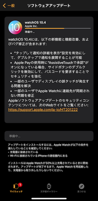 iPhoneからではなくAppleWatchからアップデートを開始しても準備中のまま。