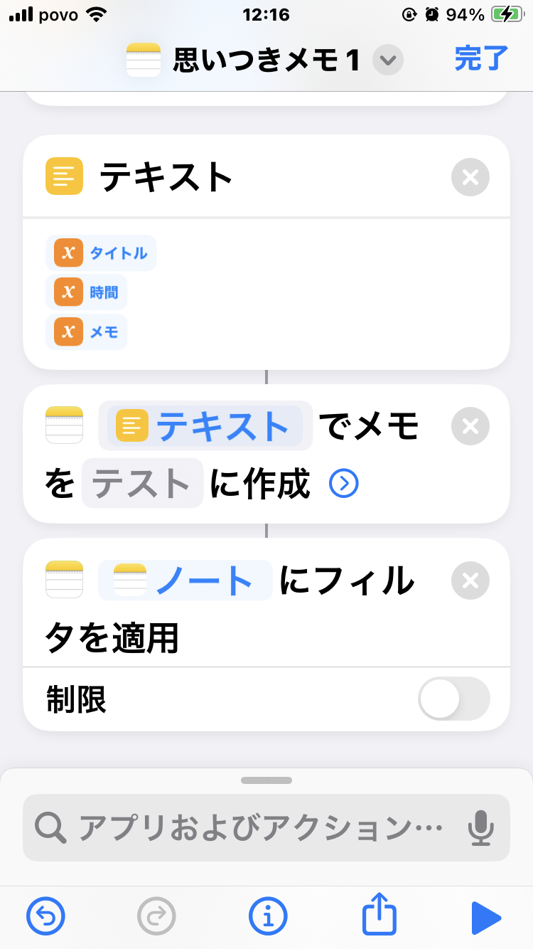ショートカットのアクション『メモの検索』でフィルタをかけたいのですが.