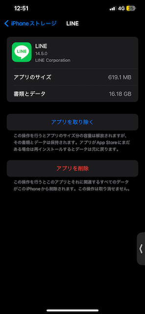 失礼します。画像の通り、例でLINEの容量は11.87GBと表示されてるのに、タップしてみると書類とデータだけで16.18GBと11.87GBを超えています。これが他のアプリやゲームも書類とデータが超えています。実際使用している容量は表示されてる11.87GBだけなんでしょうか?それともアプリのサイズと書類とデータを合計した数値なんでしょうか?