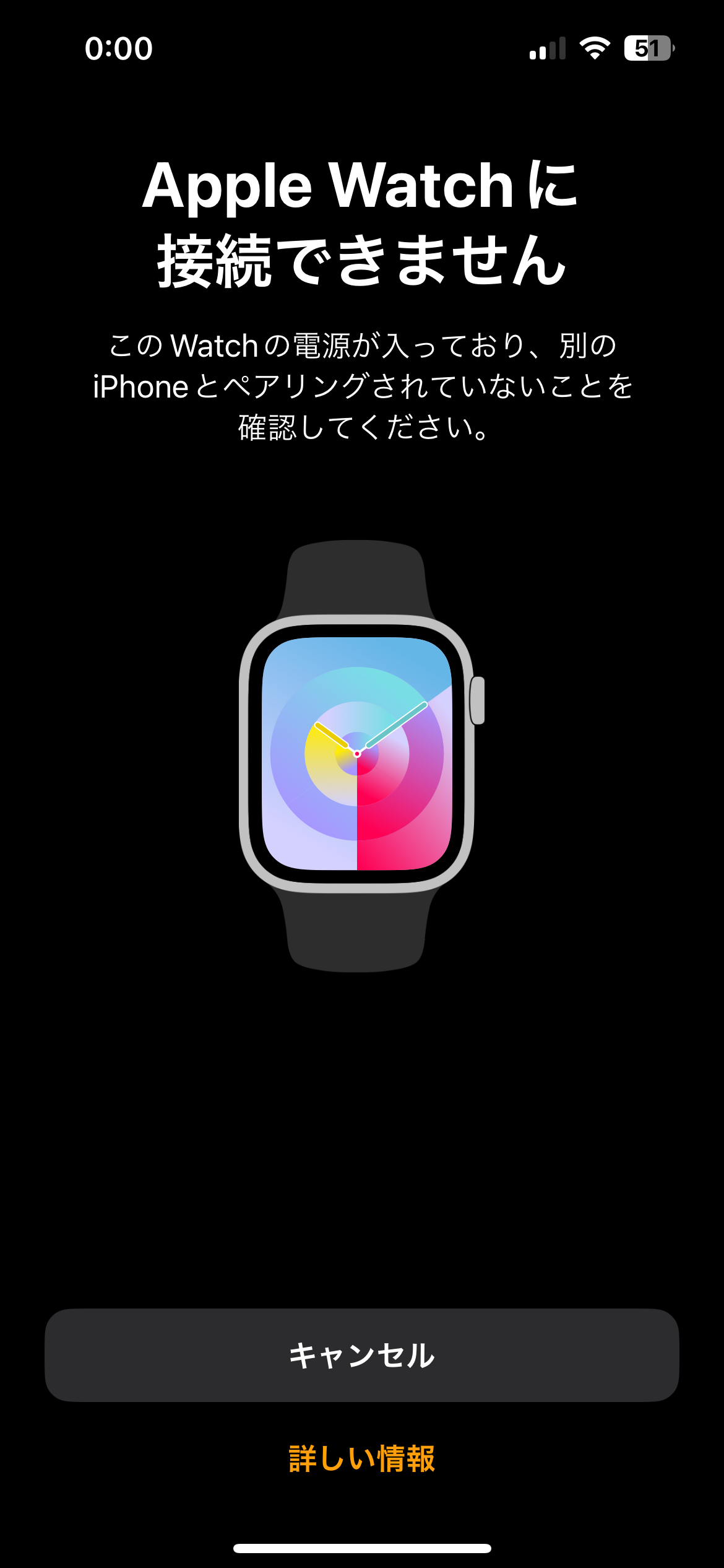 ・Apple WatchアプリからペアリングしようとしてもApple Watchに接続できないと表示(添付)
