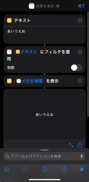 ショートカットアプリ - 検索したメモの件数を取得する事は可能か
