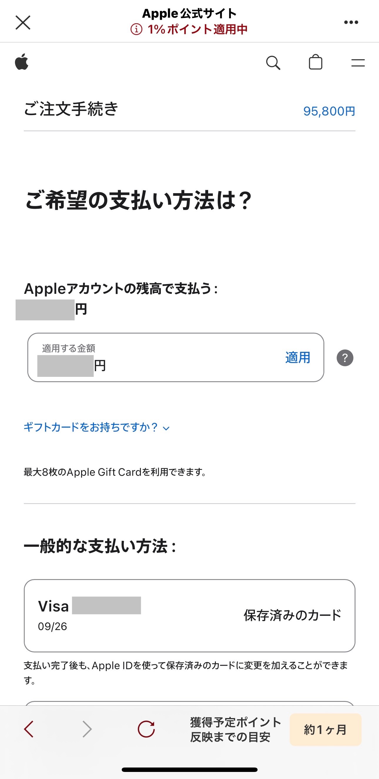 AppleCare+外したら残高選べました!無事適応されて注文できました。