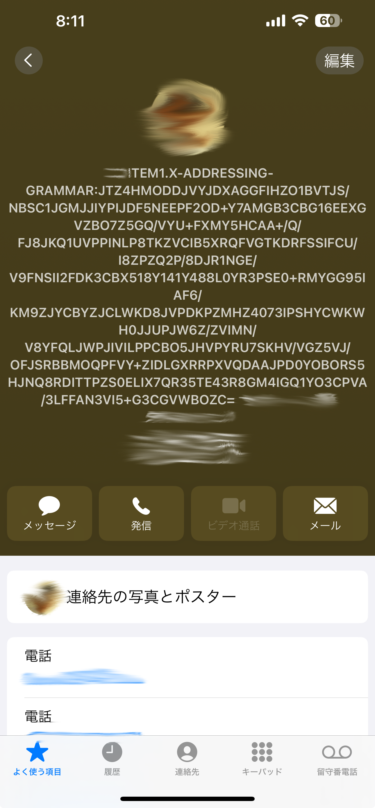 - iPhone・勤務先・自宅等電話番号が→ただの「電話」に