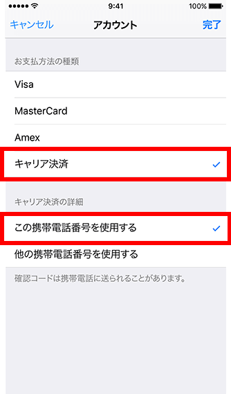 設定>ユーザ名 Apple ID、iCloud、メディアと購入>お支払いと配送先>お支払い方法を追加>「キャリア決済」を選択すると、その画面になります。