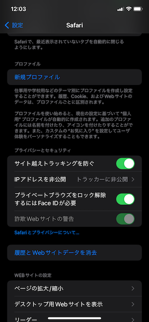 ユーザのユーザプロフィール: スカイブルー193 スカイブルー193 ユーザレベル: レベル 5 5,274 ポイント 2024/05/02 06:33 kz112 への返信 ウチのでは、ふつうに、オフに出来ますね。ということなので、スクリーンタイムとかで何か設定してある可能性があるのではないでしょうか。ただ、何で、オフにする必要があるのでしょうか、、、?Legal - Safariとプライバシー - Apple 返信 リンク