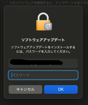 macOS Sonoma - ソフトウェアアップデート時パスワードを入力しても通らない