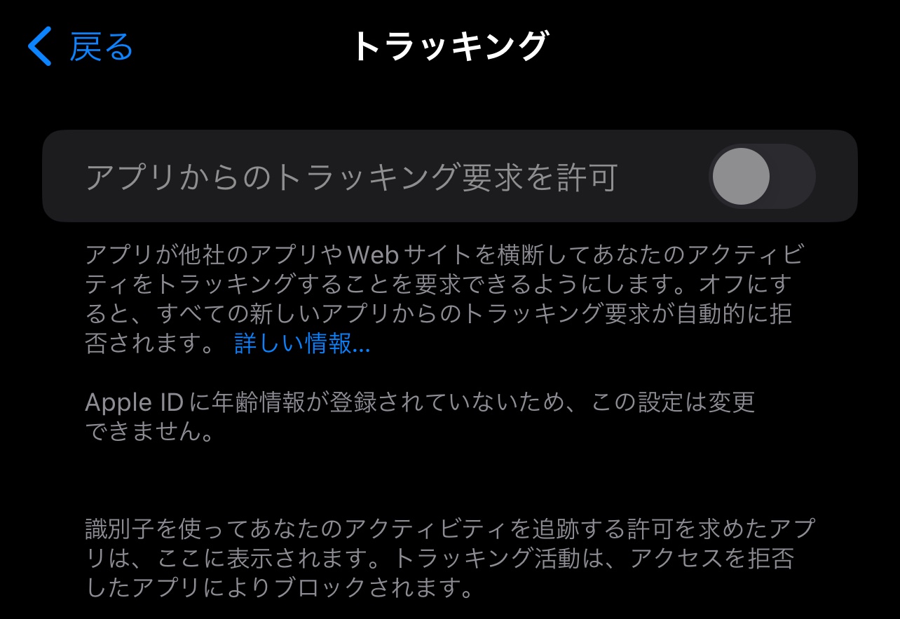 トラッキングが年齢情報が登録されていませんと出て、許可できません。
