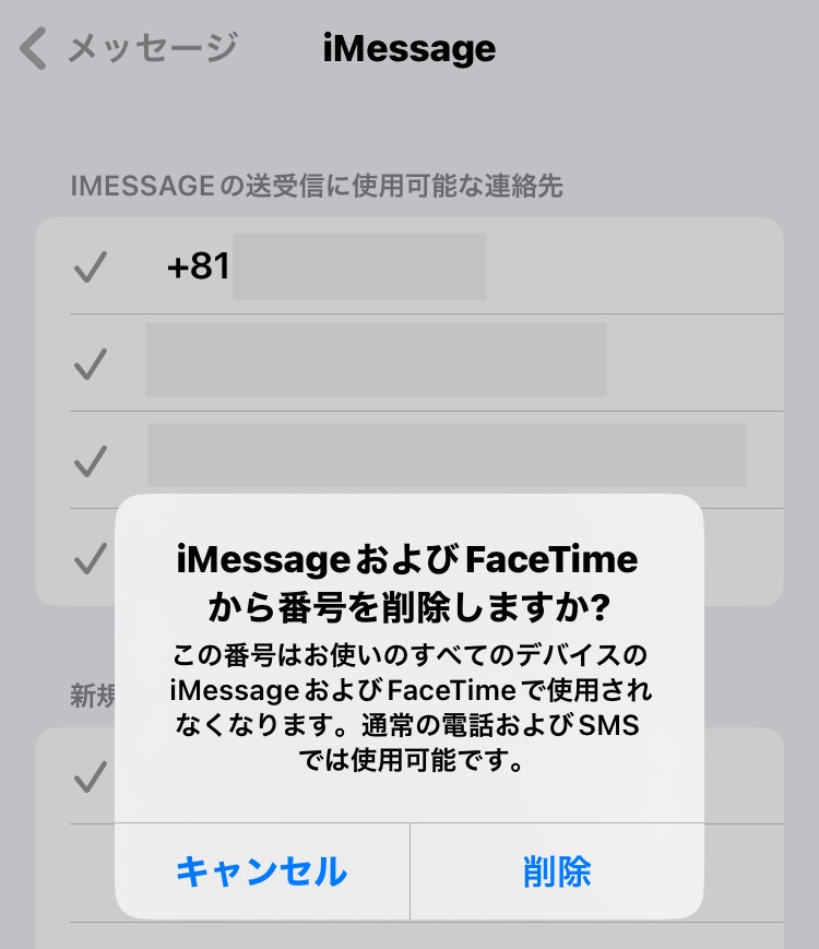 (この電話番号は、IメッセージとFaceTimeで使用されています、この電話番号が登録されているiPhoneを今もお使いの