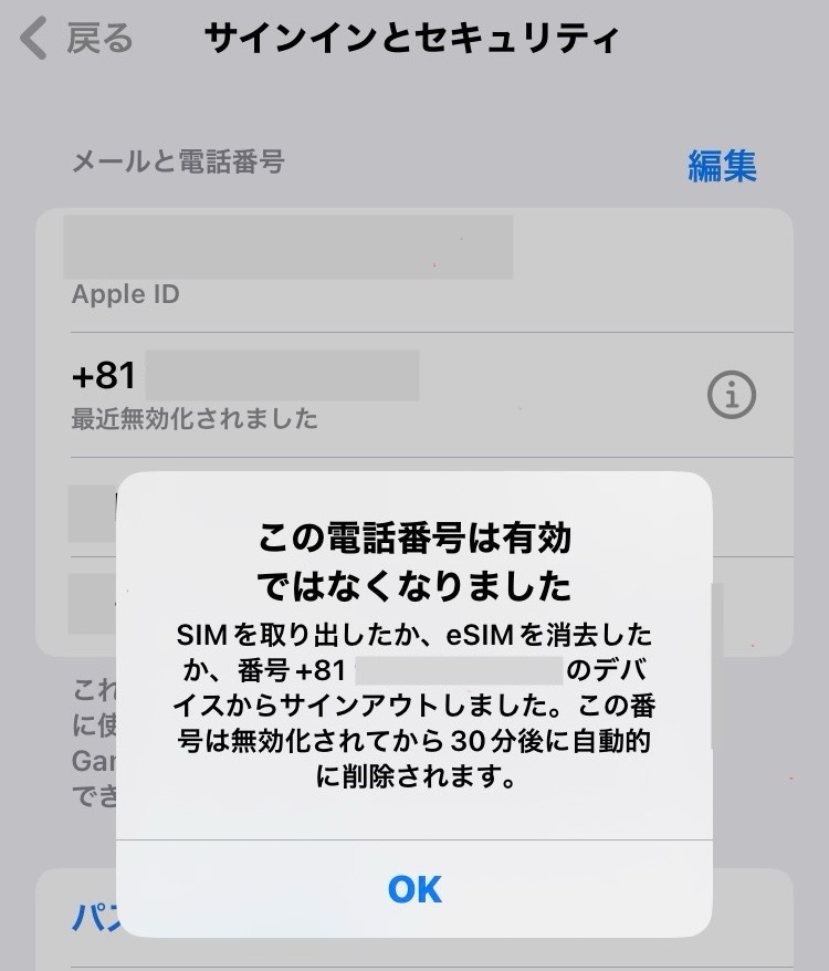 サインインとセキュリティに見知らぬ電話番号があり削除もできない状態