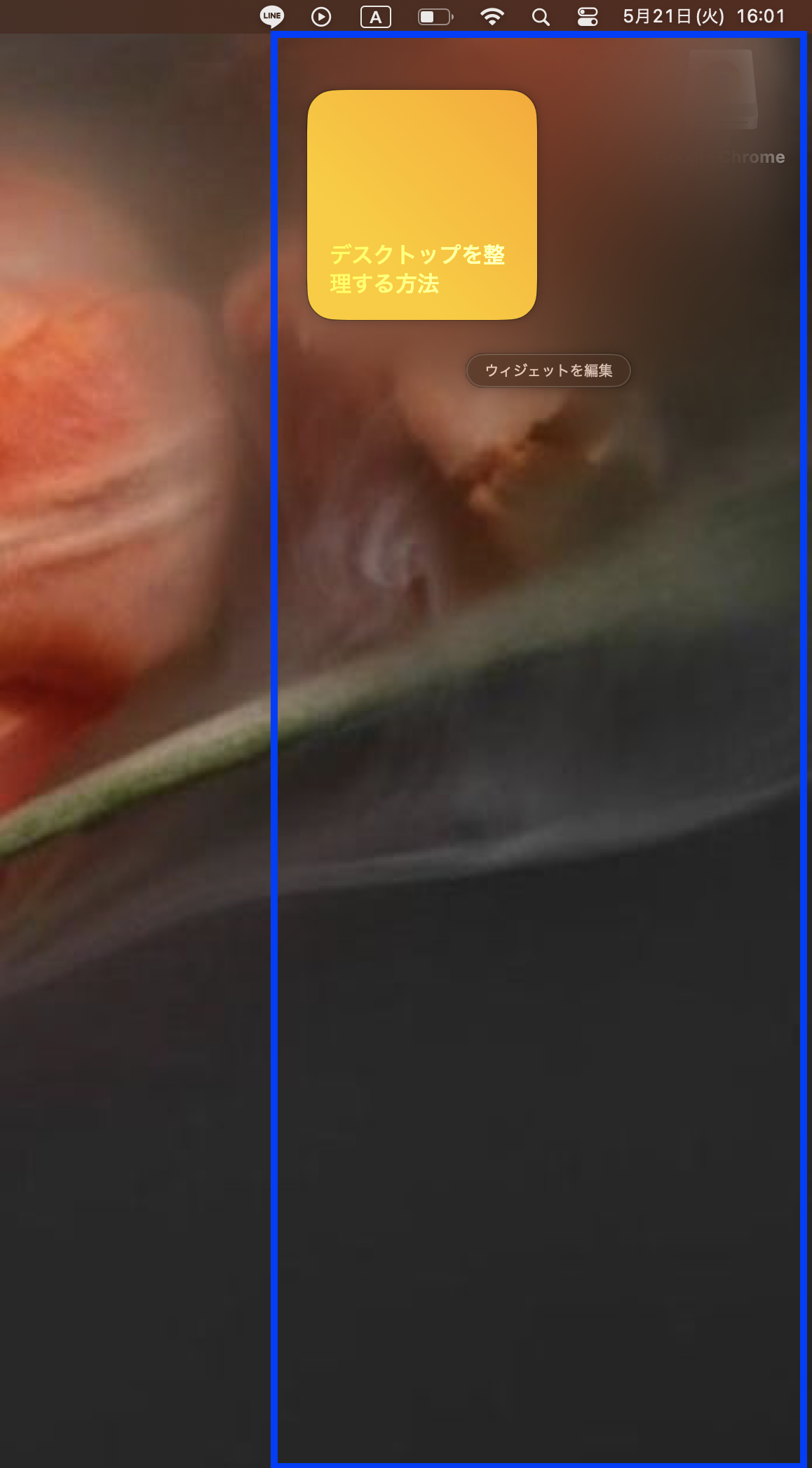 ventura13.6.6 で画面右側から出現するウィジェットを非表示にしたい