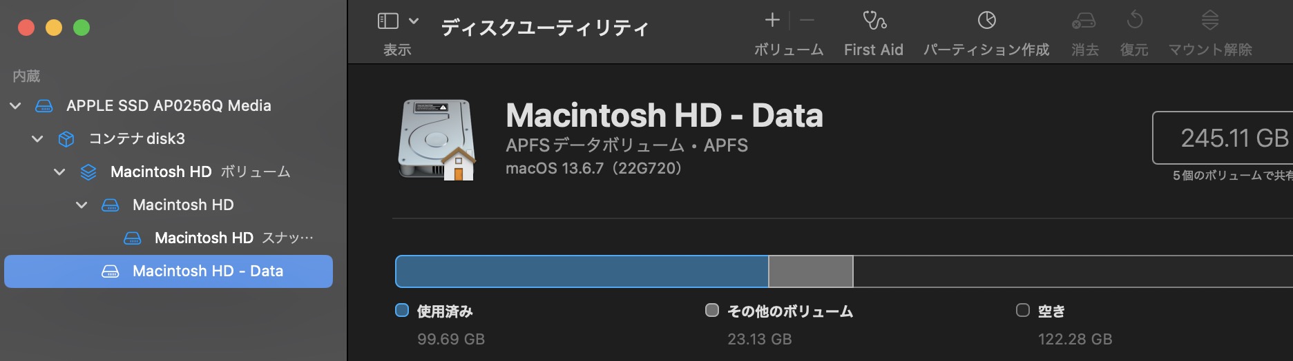 (ディスクユーティリティで確認できるMacintoshHD-Dataと同じものなのか、別のDataなのかがわかりません)