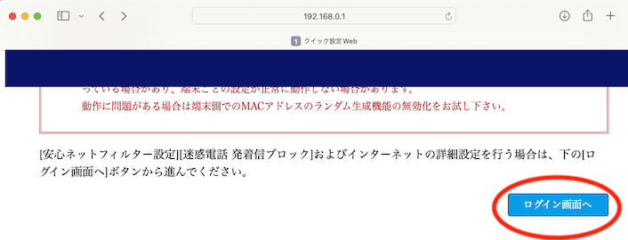 ブラウザで、http://192.168.0.1 にアクセスして自分が設定しlogin