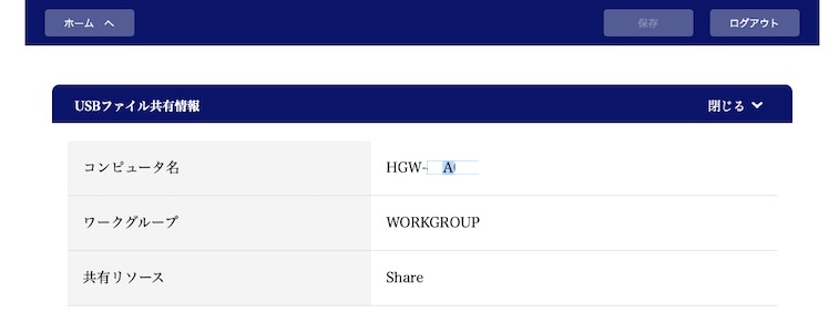まぁ共有に表れてるわけなのでUSBメモリのFile共有機能の設定を確認。