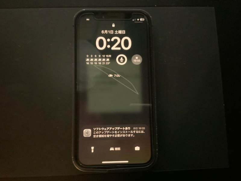 iPhoneの下に出るホームバーが邪魔だったので消すためにアクセスガイドを使用しようとしたらなぞったところに変な線が画面上に出てそれ以降タップが効かなくなりました。再起動させようにもパスコードも入力できない状態です。真っ暗な画面でタップしたら画像のようになりますが、パスコード入力で入力できません。三本タップは効く状態です。ホームバーを消すのは何度かやったことがありましたが、あまり慣れて無くやり方をその都度検索してやるレベルでしたが、今回は急いでてなんか見たことない灰色の四角い枠が出てきて居たような気がします。そこをなぞった結果が画像です。真ん中の7:00あたりの線。それ以降操作できなくなりました。