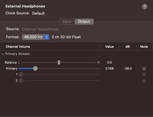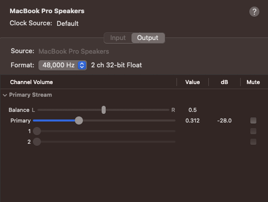 この結果からはAudio MIDI Setupの設定も確認したほうがいいと思います。