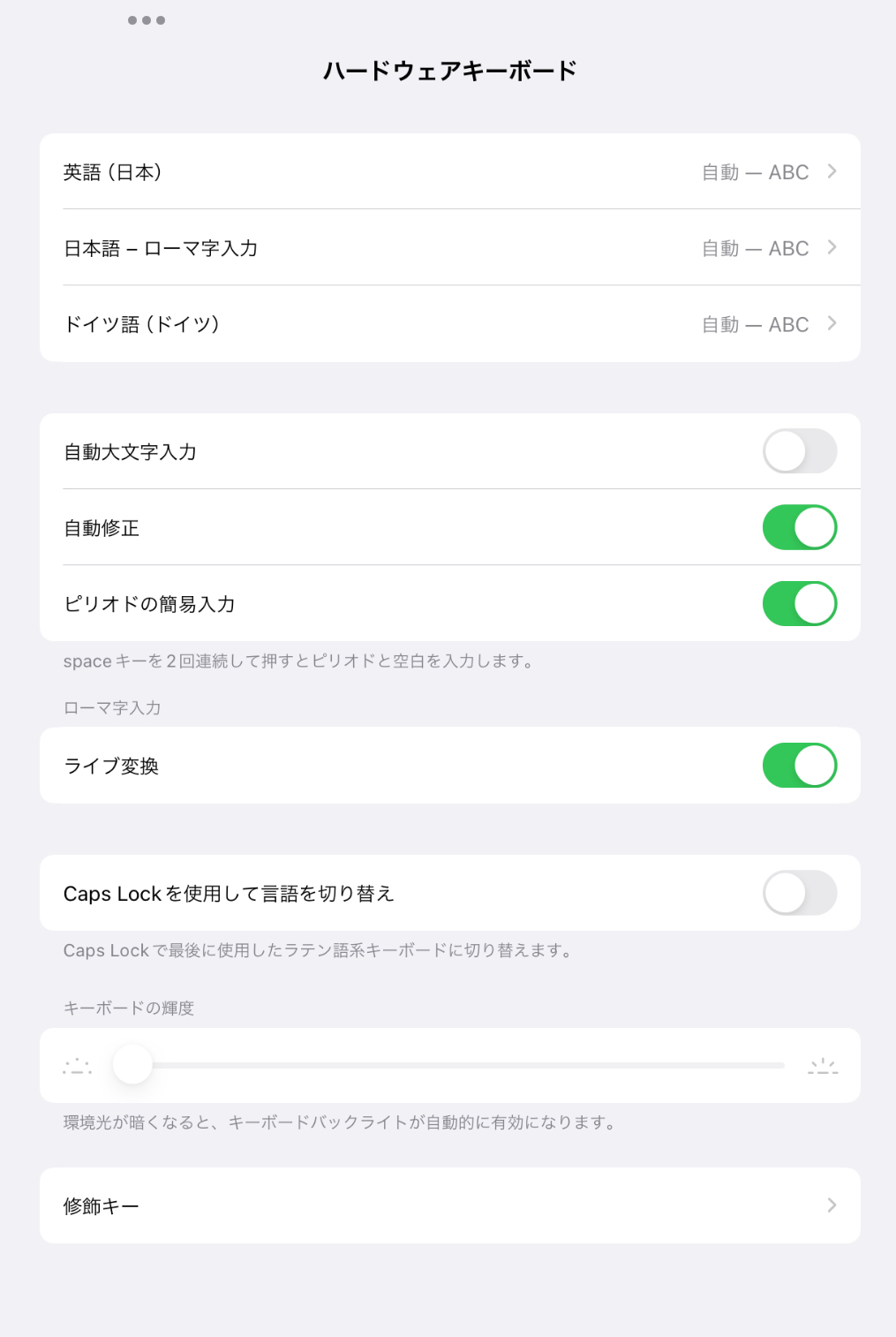 当方ハードウェアキーボードを使用しています。iPadはメインでペンを使っているのですが、たまに文字入力をする際に不便を感じしています。