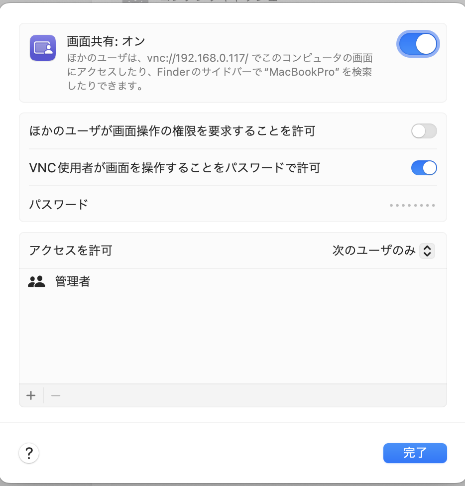 Windows 10からMac OS 14.3をリモート操作しようとしています。