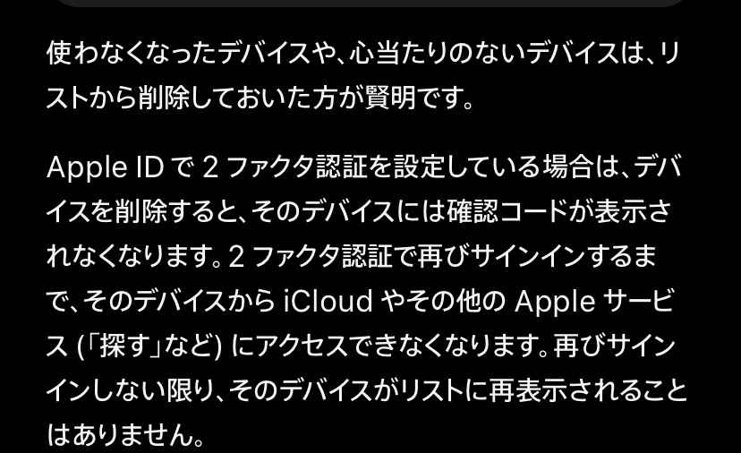 だから見られたくないなら、Apple IDのリストから削除した上でApple IDのパスワードを変更しておきます。そうすればApple IDにサインインできなくなります。