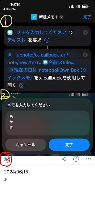 iPhoneの「ショートカットアプリ」にて新規でメモの作成を行いたいです。