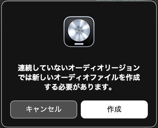 Logic Pro -「オーディオファイルの長さが変更されています」というポップアップ対処法