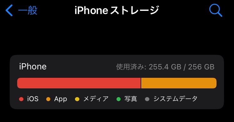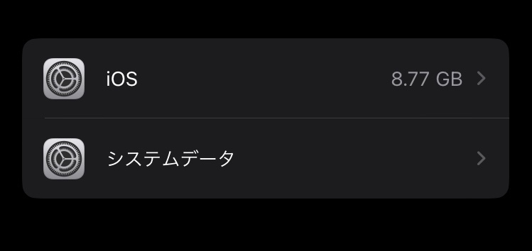 約2週間前にiPhoneストレージを見た際は余裕があったので変に思い、改めてiPhoneストレージを確認すると画像のようにiOSがかなりの容量を占めるようになっていました。