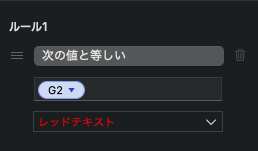 ・上図の「次の値と等しい」は、ルールの選択で「数字」>「数値と等しい」を選んだ場合です。
