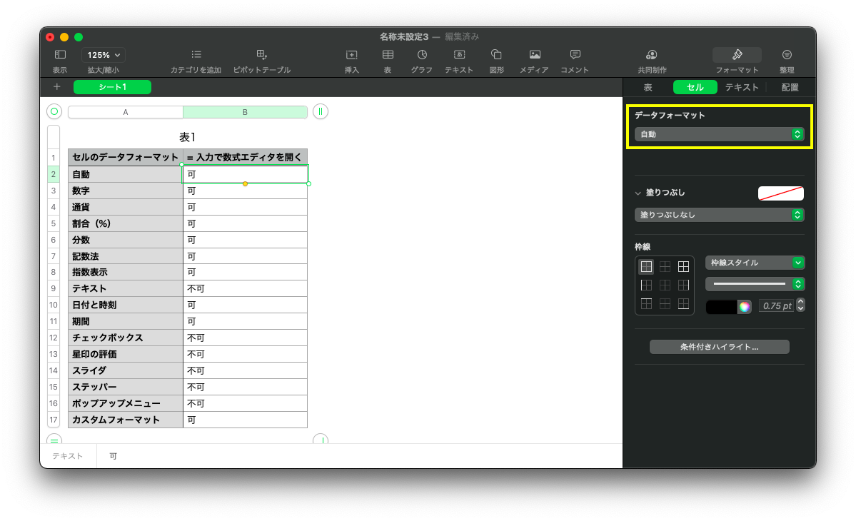 Numbersで「=」を入力しても数式入力ダイアローグが表示されません