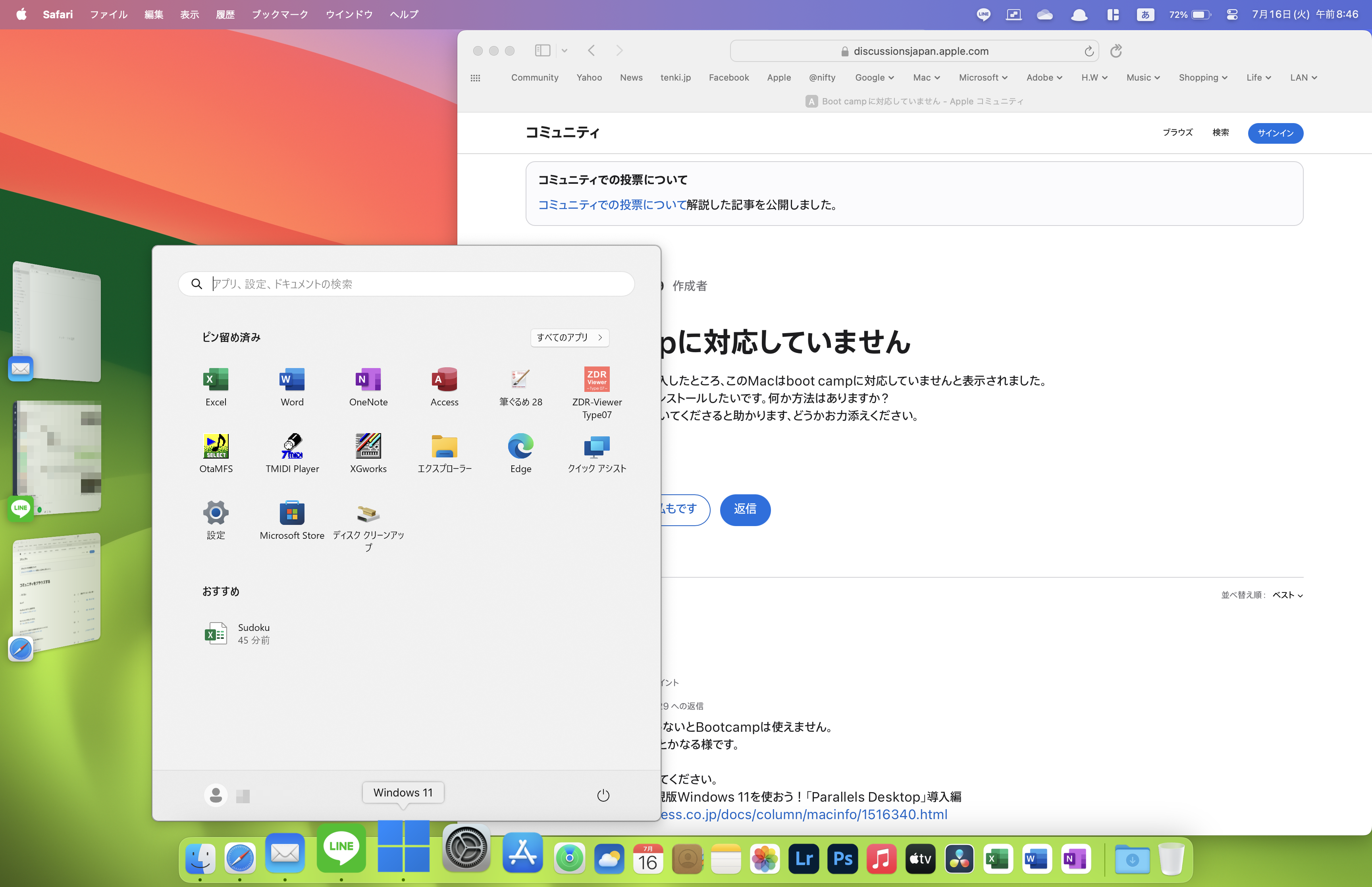 私はMacBook Pro (M1Pro,2021)+ Parallels Desktop 19 for Mac でWindows11 Home ARM版を使ってます。