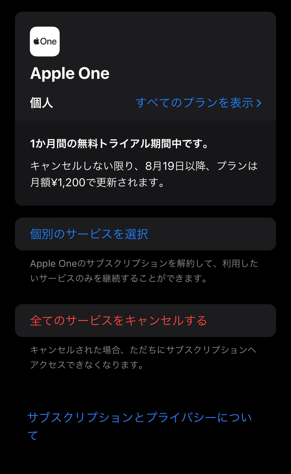 画像の通り、さっきApple Musicの無料1ヶ月トライアルのサブスクに登録したいのですが、今解約しても更新日までは曲は聴けますか?