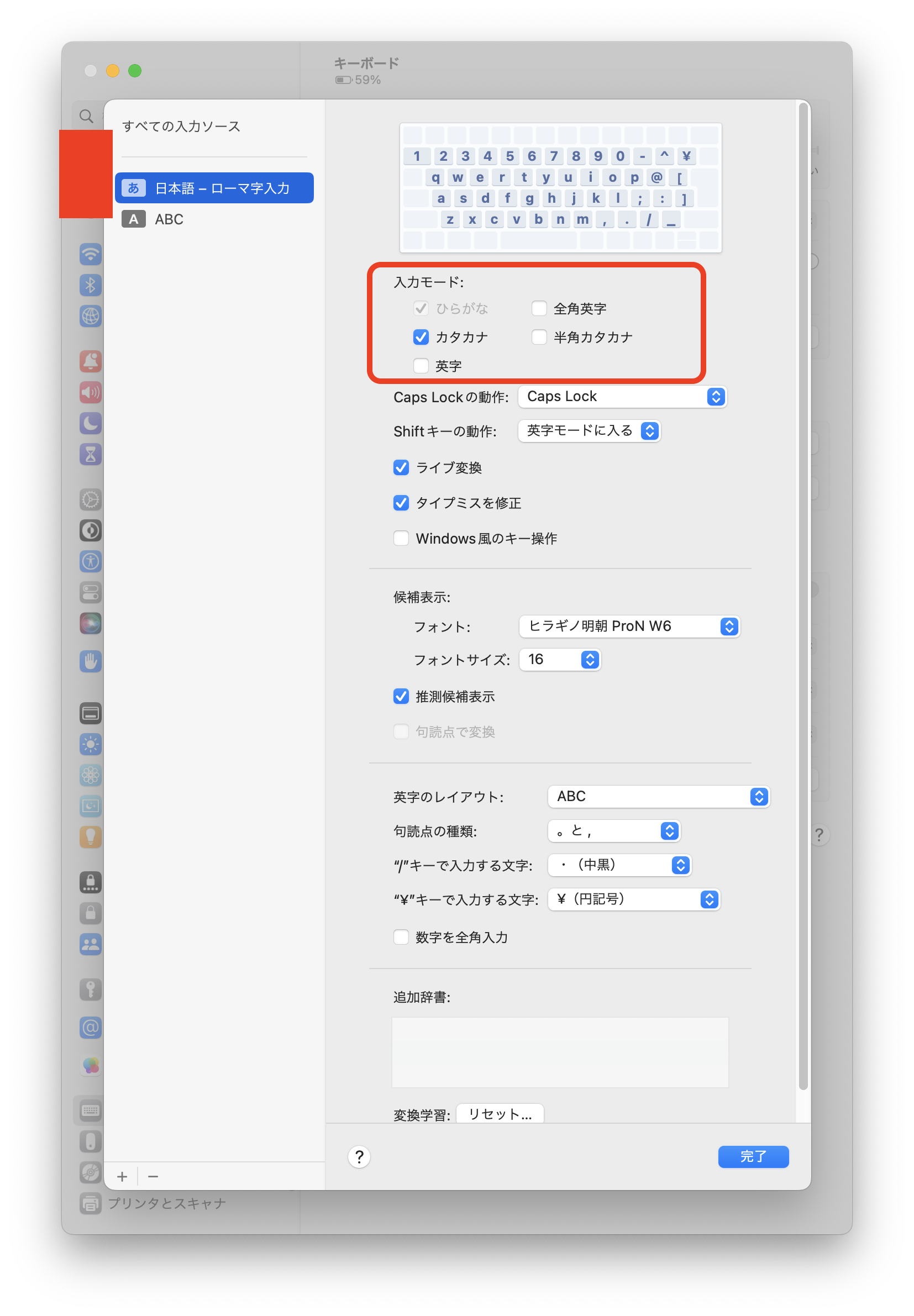 MacOSにて、英数字のみ半角に変換し、カタカナは全角のままにしたいのですが