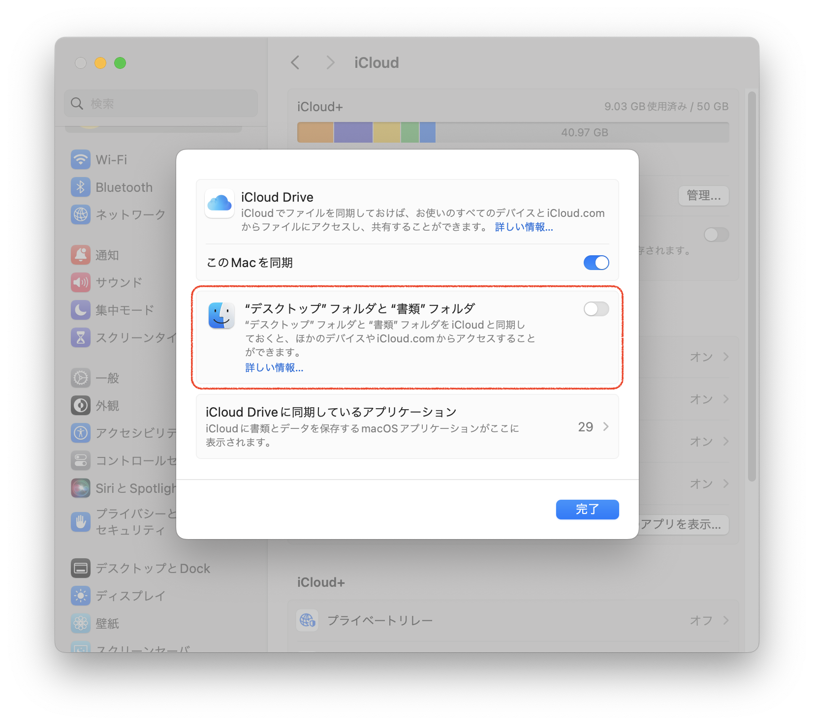 iCloudドライブでデスクトップの同期も使用していて、iCloudをオフにすると似たような