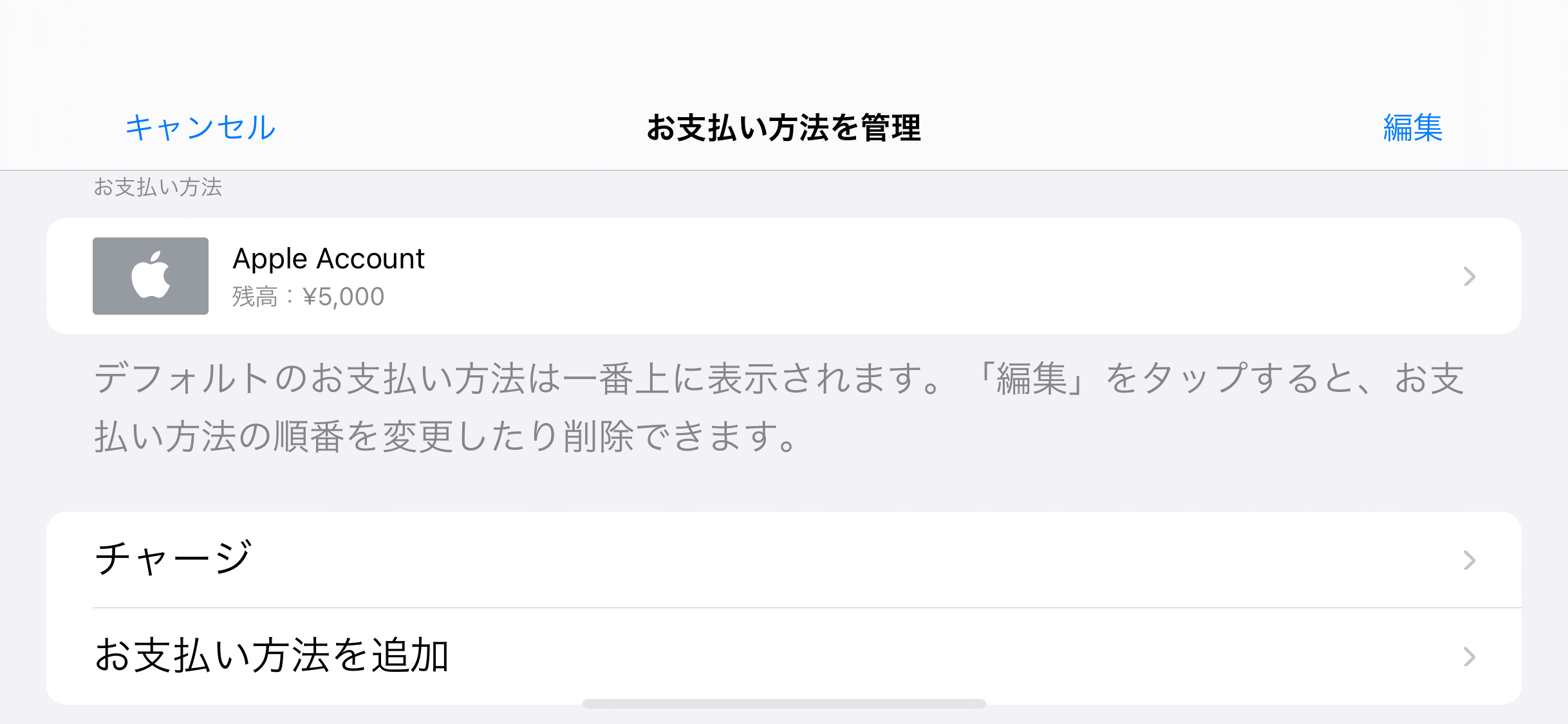 また、Apple アカウントの「お支払い方法」の選択肢に Apple Pay 等が有る場合は、一旦 Apple Pay を選択肢から削除したら、Apple アカウントの残高で支払いを行う事が出来た と言うケースも有ります。