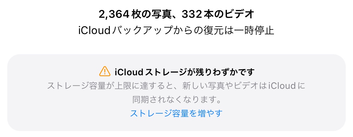 ちなみに関係あるかわかりませんが、共有アルバムが4つあり、すべて合わせて2350項目くらいです。