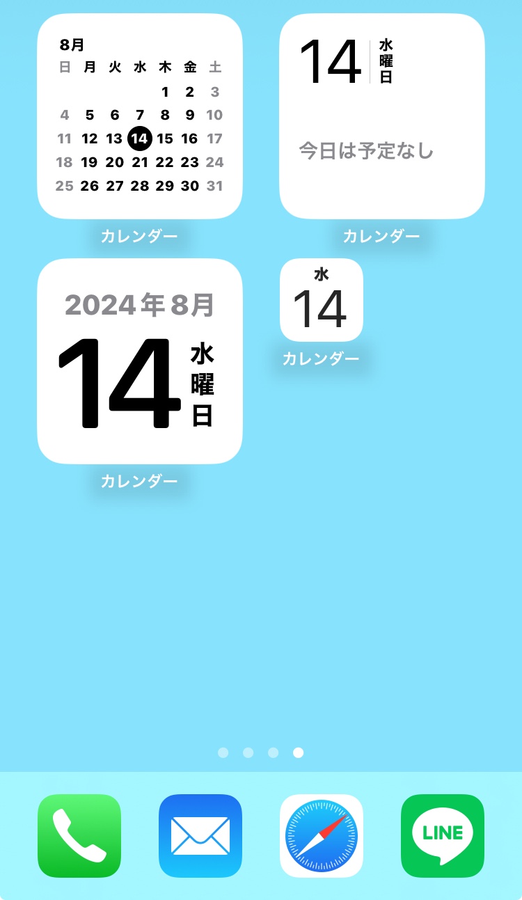 下のスクリーンショットにあるカレンダーのうち、大きいサイズ3種類は、ウィジェットで追加できるもののうち1番サイズが小さいもの。