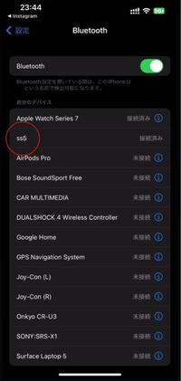 iPhone12 miniのBluetooth設定画面で接続設定した記憶のないss5