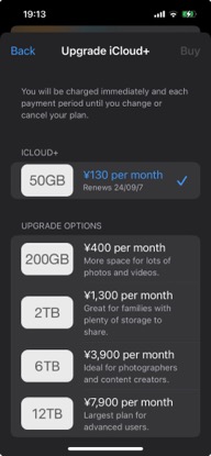 以前200GBでアップグレードしてたんですけど、一回やめてメールの受信ができなくなったため再度アップグレードしようとしたところ2TBからしか表示されず。。本体のストレージは125GBくらいなのですがiCloudのストレージは200GBを超えてしまうということはあるのでしょうか?無知ですみません。。