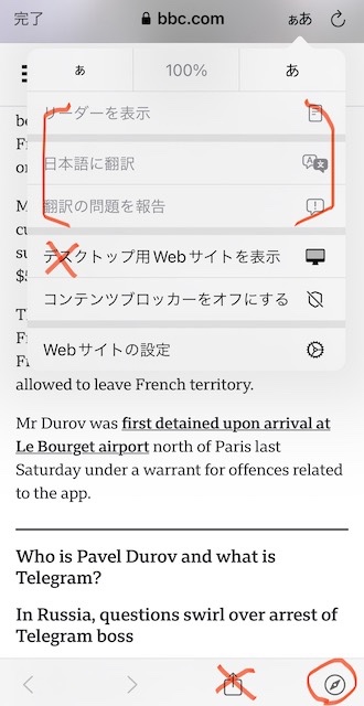 他のアプリ内のリンクからSafariを開いた時に翻訳や共有などの機能が使用出来ない