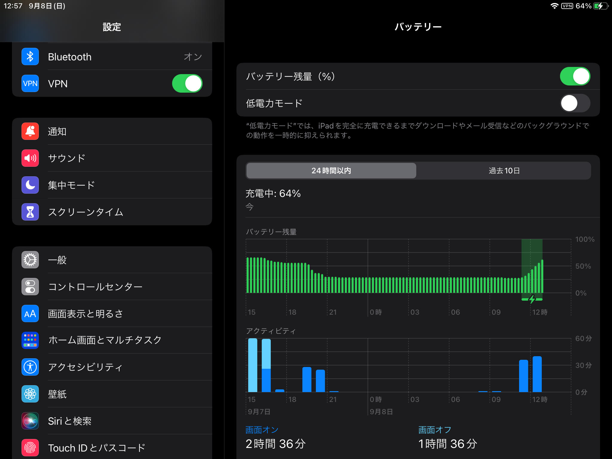 iPadのバッテリー残量