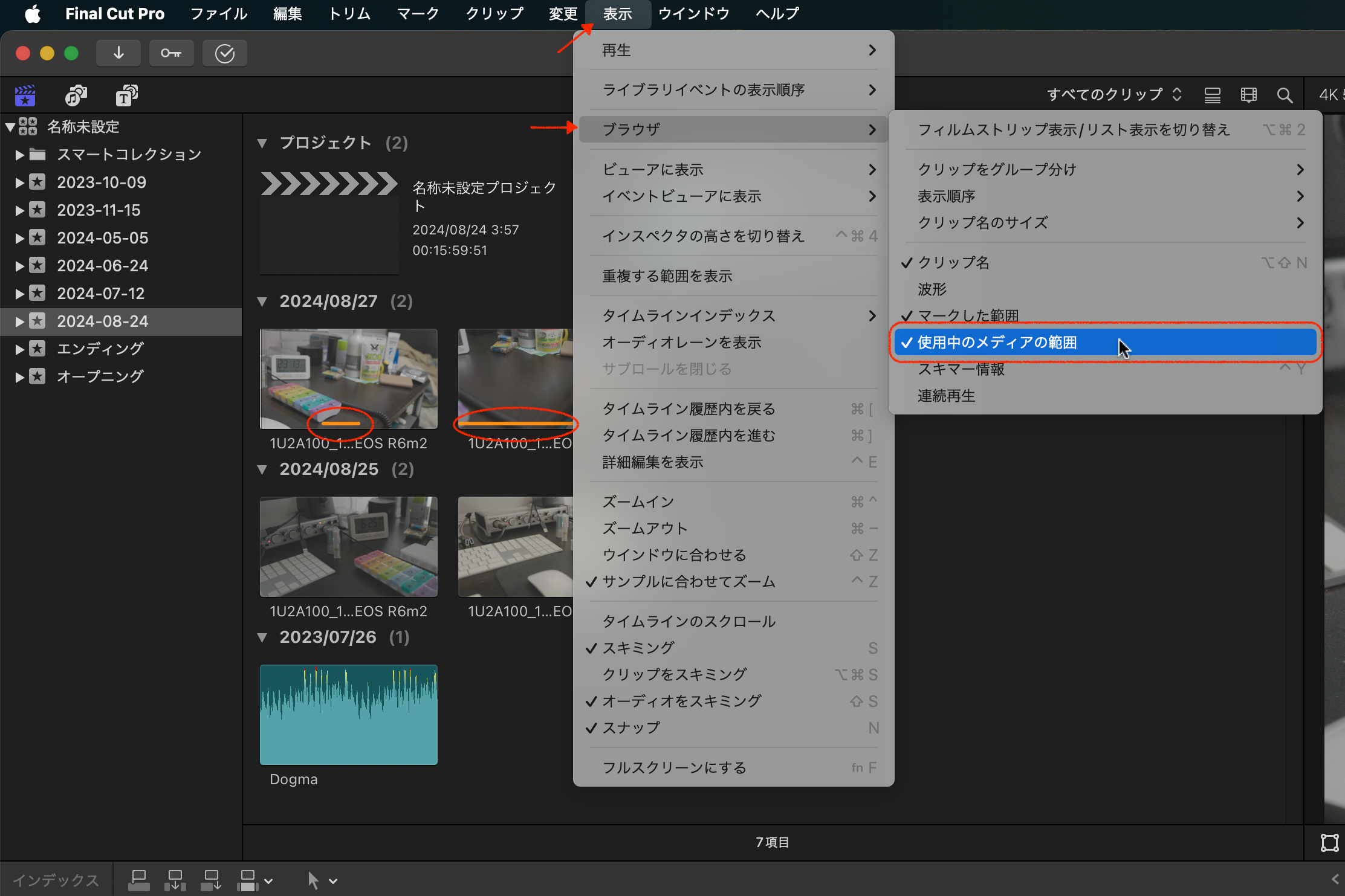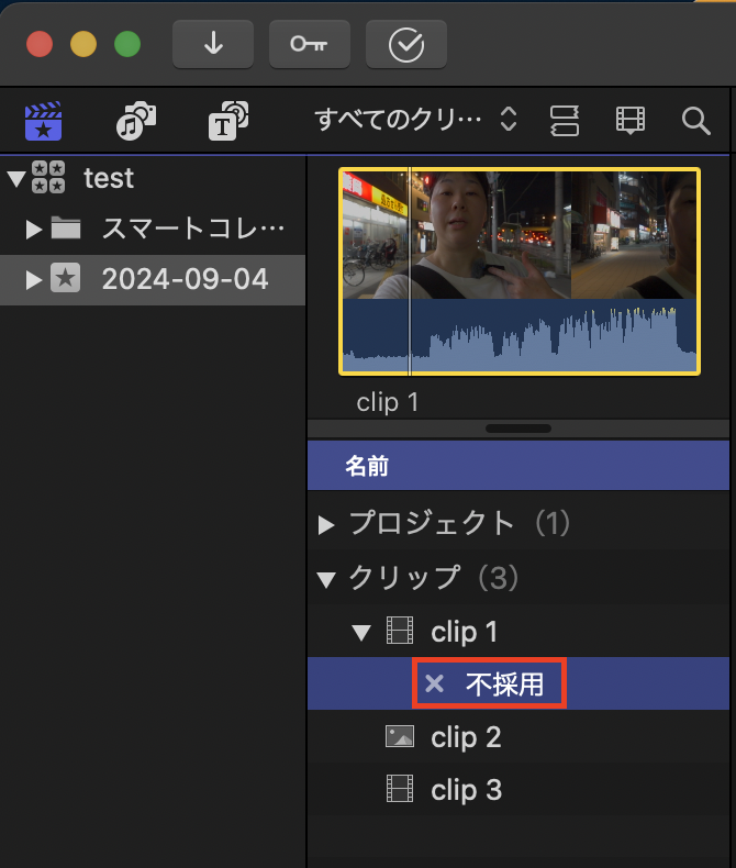 Final Cut Pro - 未使用のクリップを検索し、イベントから削除したい