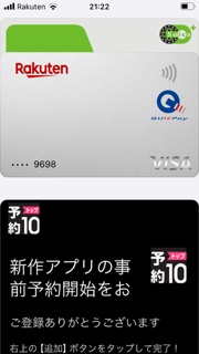 iPhoneにて、ウォレットのページに、
