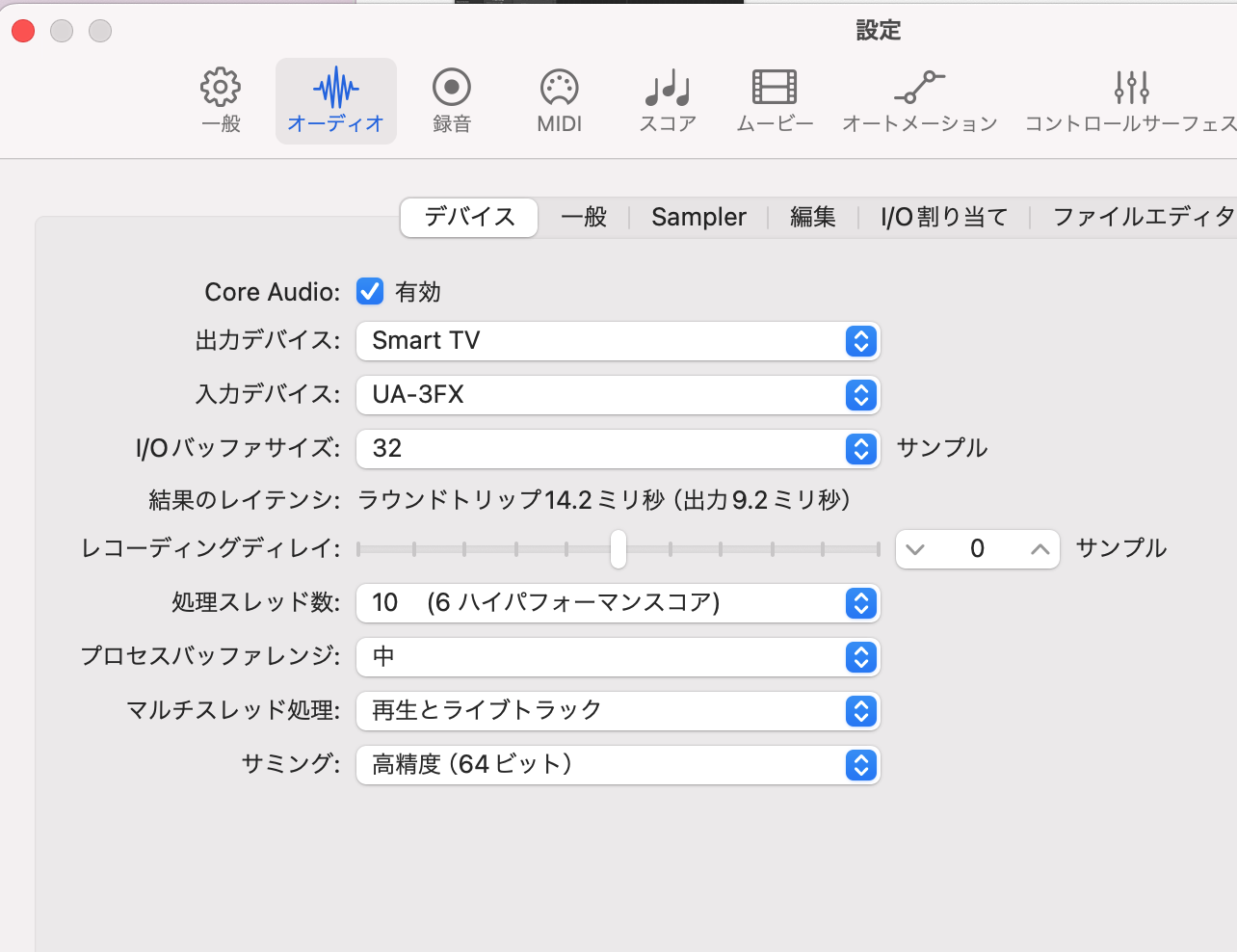 logic オーディオ録音時に遅れるだけならまだしもMIDI入力も遅れる