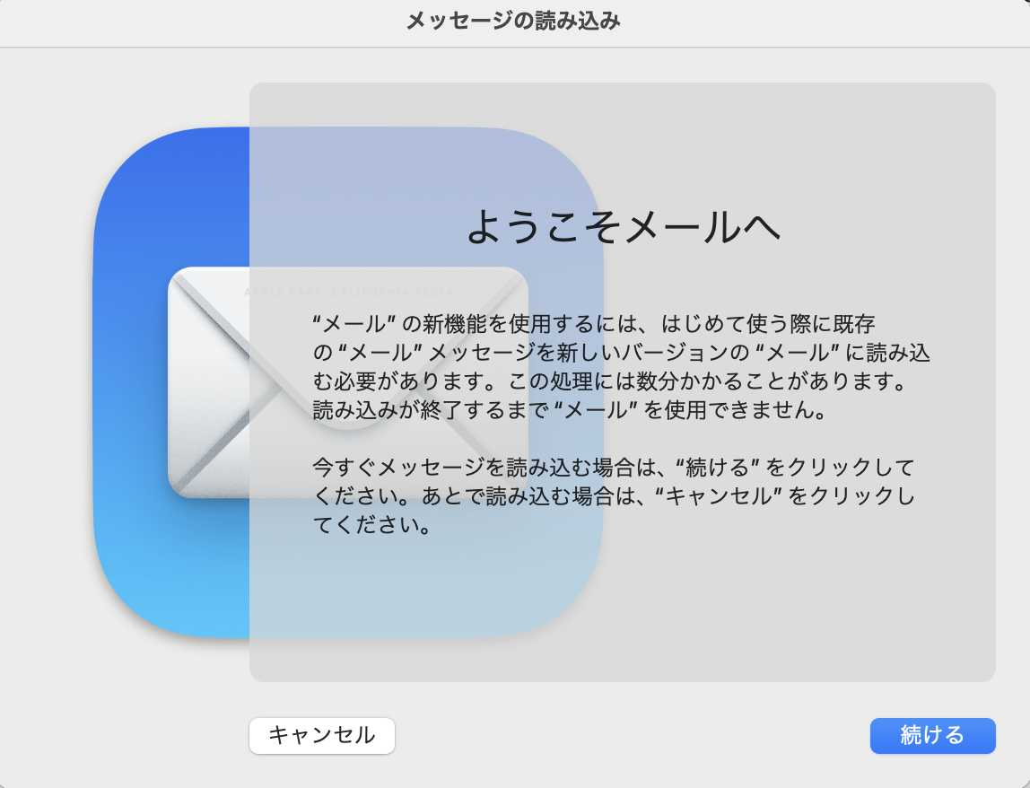 Mailの挙動が少々不安定でしたが、ある日、立ち上げたときにMailが起動しなくなり、再構築を試みました。