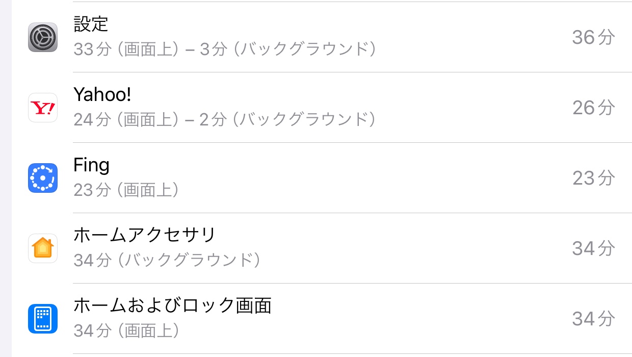 iPadを7時間使用でそのホームアクセサリのアプリは34分使用となっていて、