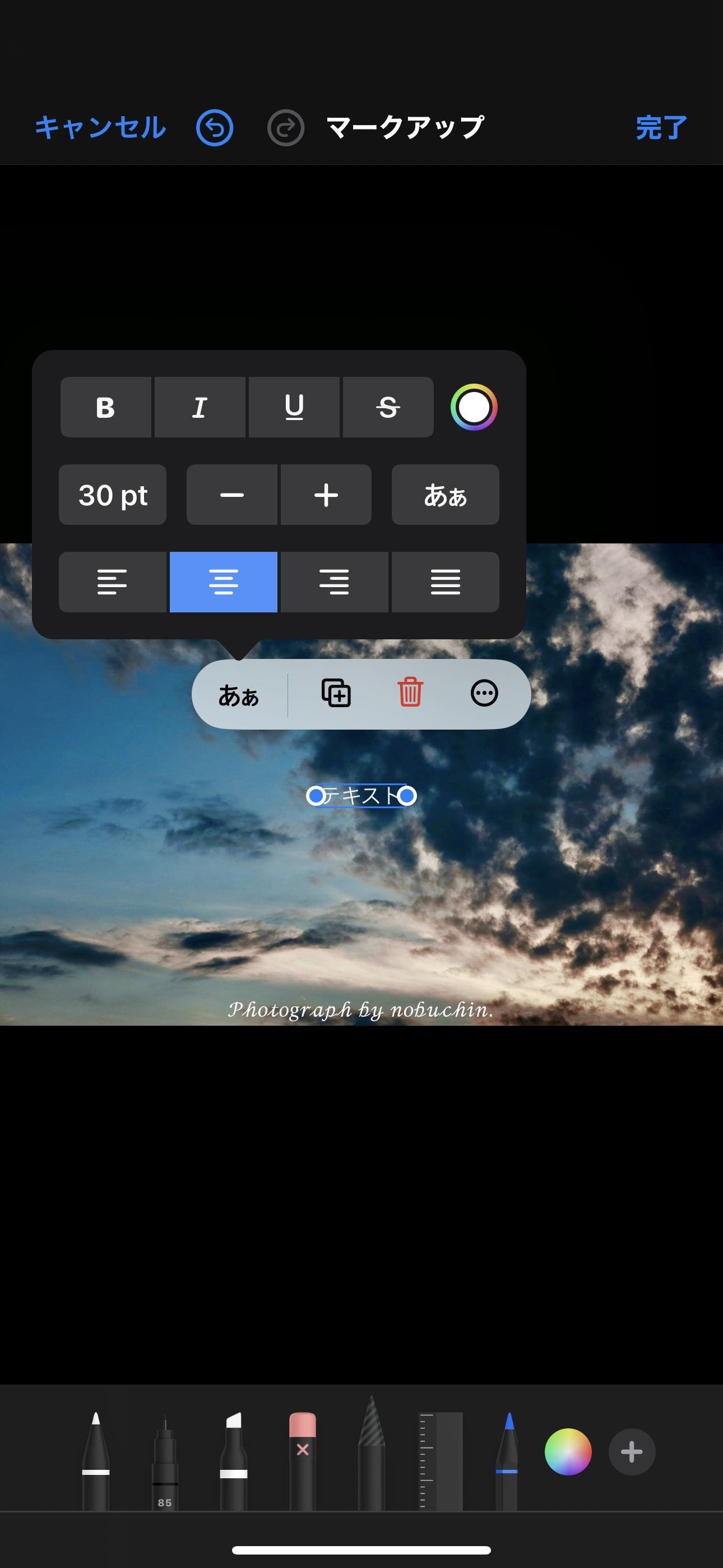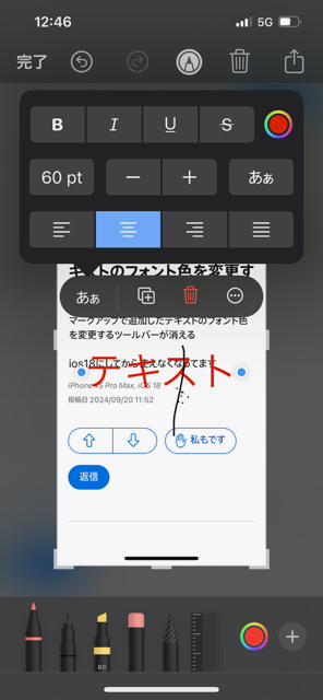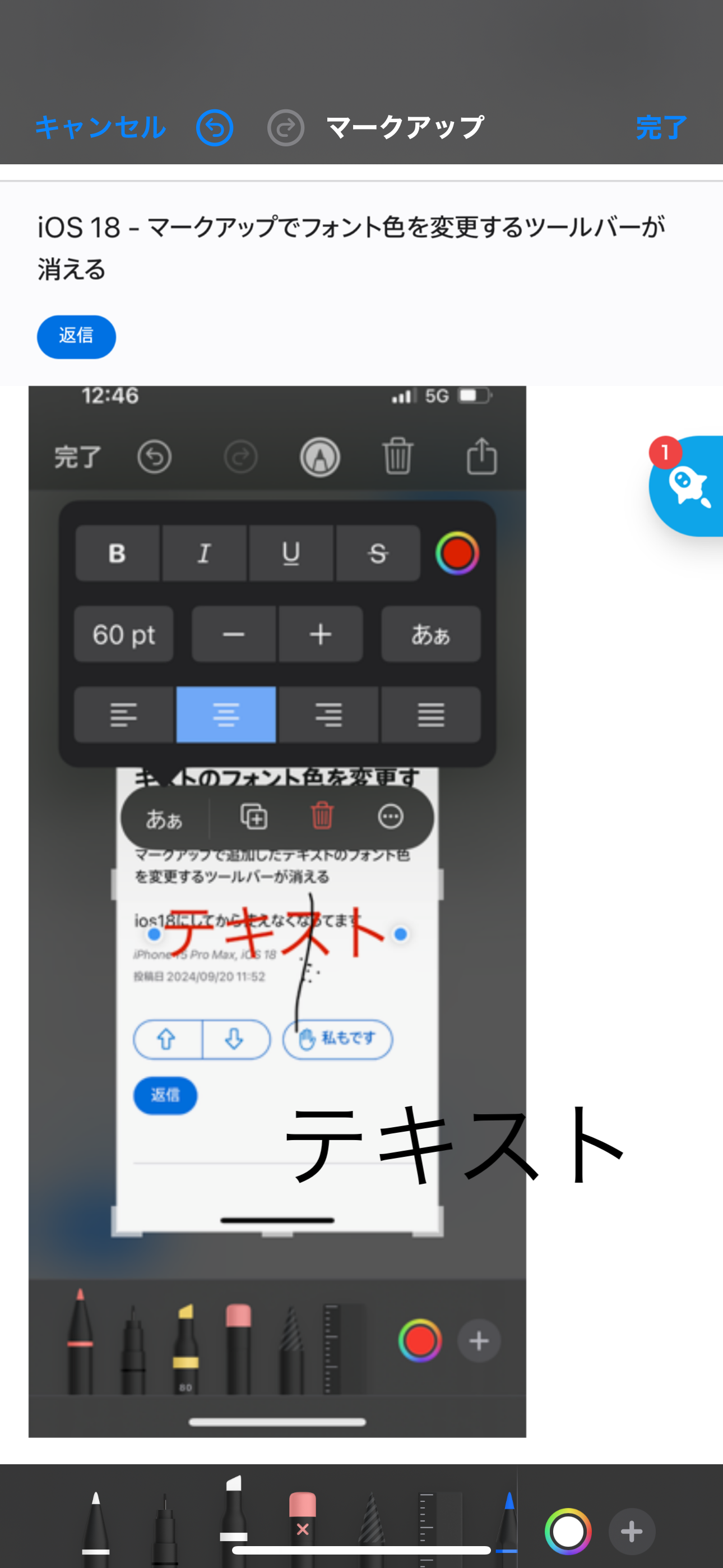 iOS 18 - マークアップでフォント色を変更するツールバーが消える