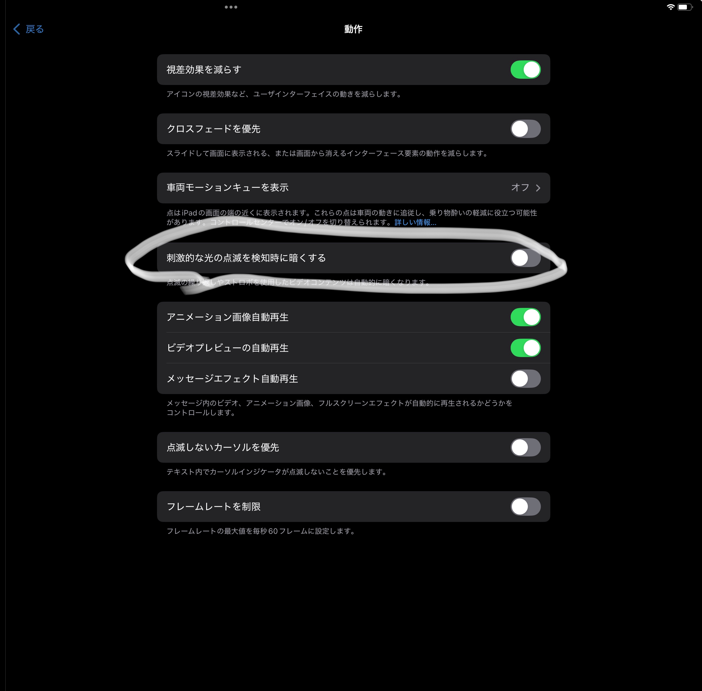 iPad Air M2 を購入した当初から、下記箇所を設定しても画面の明るさが時々勝手に変わってしまうのですが、明るさを一切変えないためには他に設定が必要でしょうか。