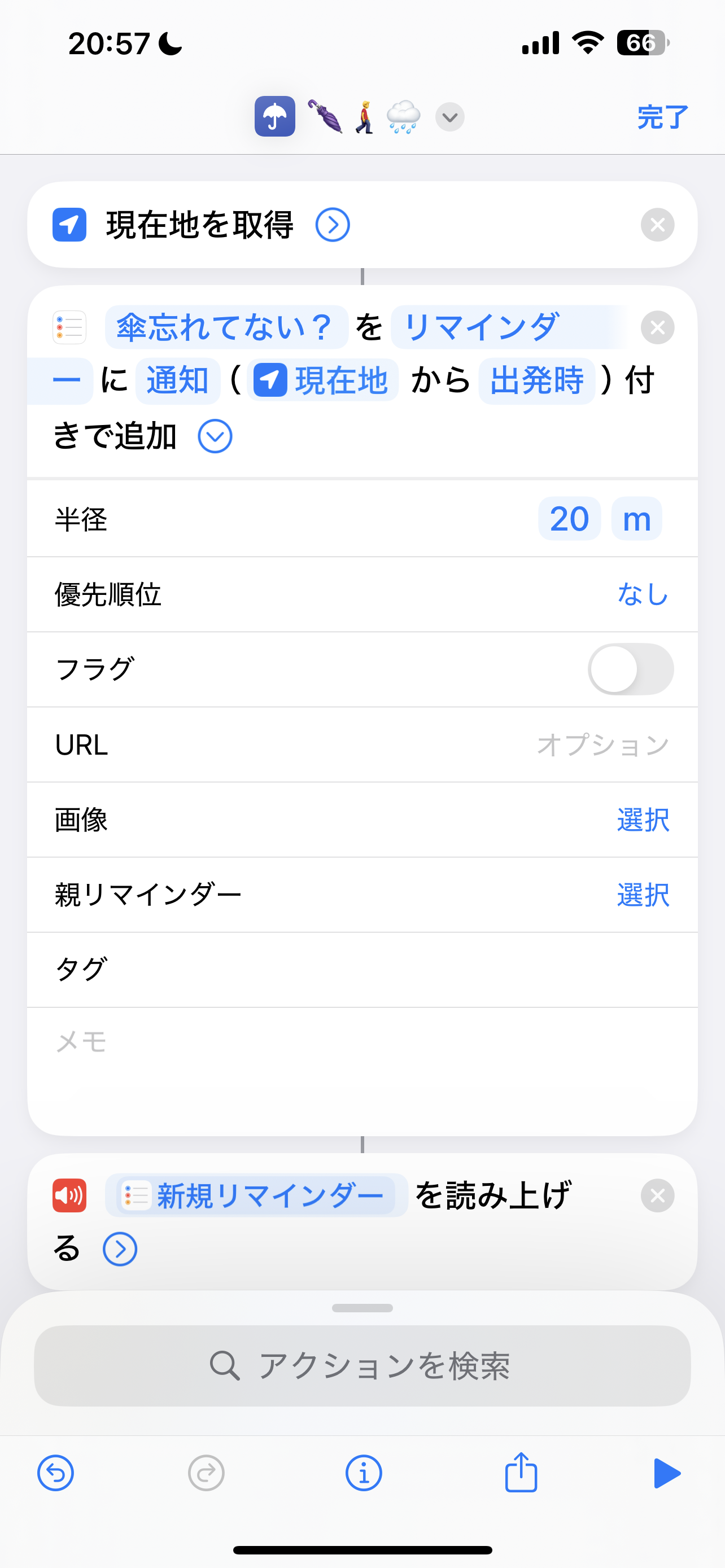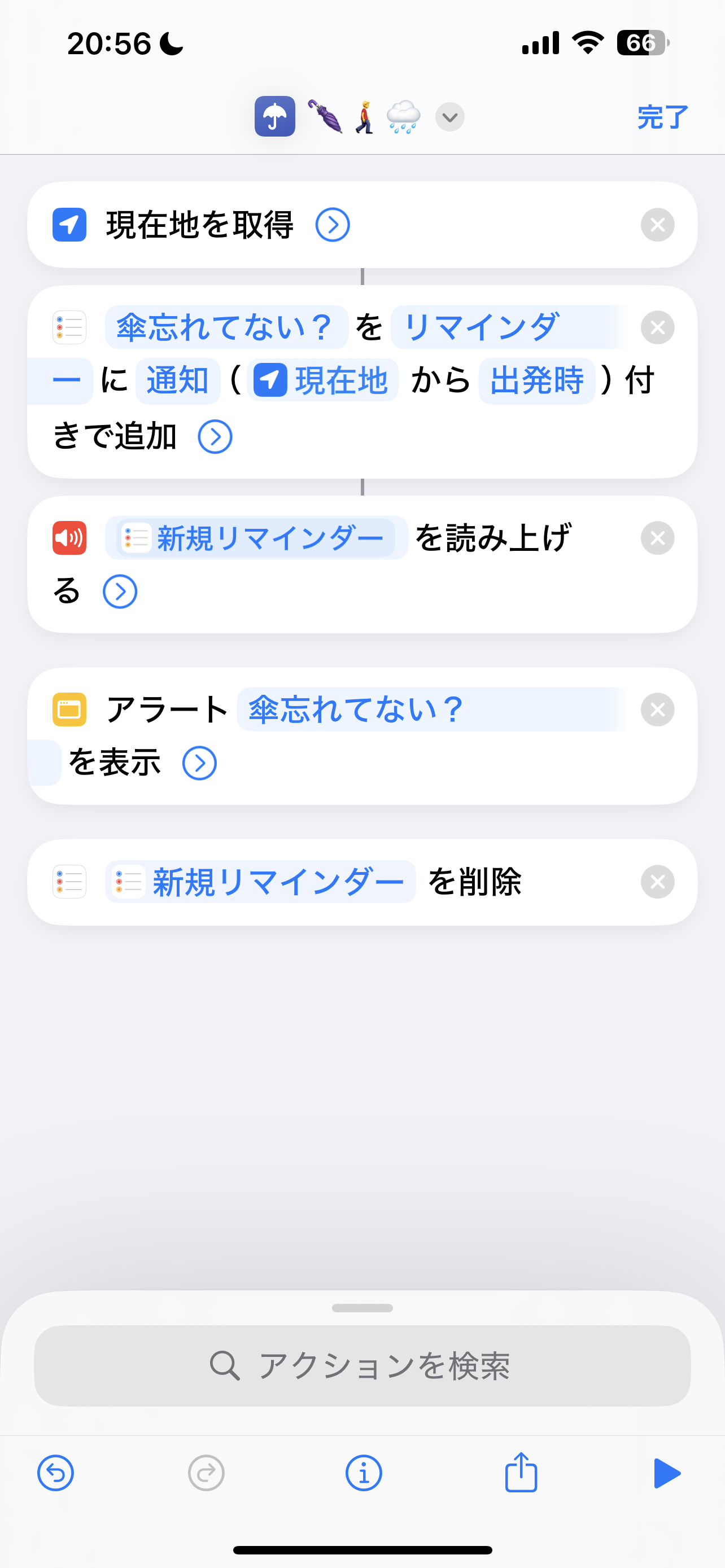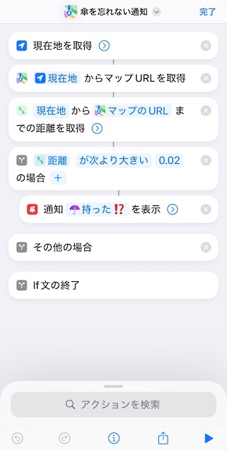 iOS 18 - 傘をお店に置いて出た時に通知が来るようなショートカットを作りたい