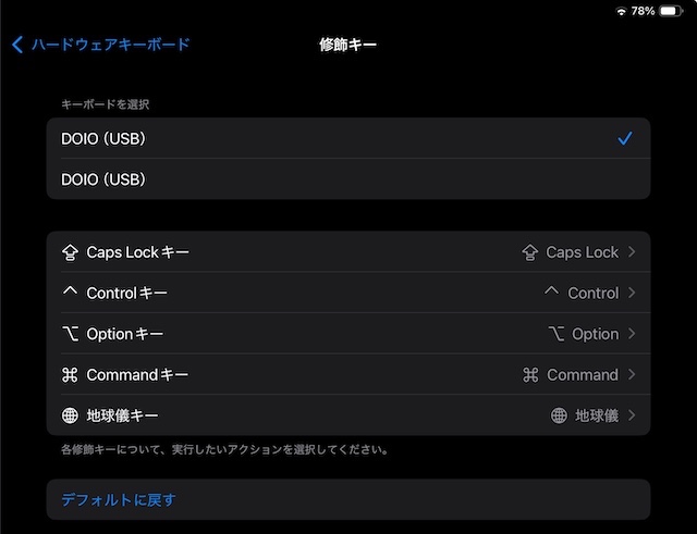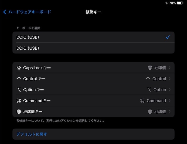 iPad 10 無印 (A2696)でハードウェアキーボード(kb16)を有線接続すると、変更していた修飾キー(CapsLock→地球儀Globe
